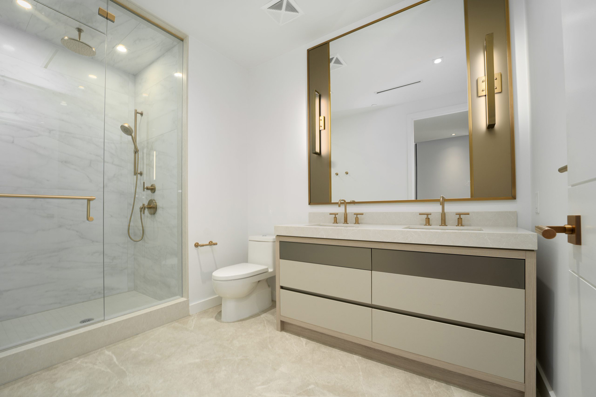 Relish in luxurious contemporary Kohler finishes, including spa-like bathrooms with large rain showerheads, custom closet millwork, and custom designed vanities with built-in storage and under-mounted porcelain sinks.
